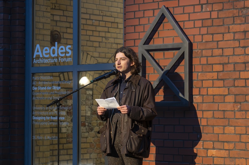 Martin Mostböck gestaltet im Zusammenspiel von Entwurf, Material und Handwerk. In Der Stand der Dinge wird sichtbar, wie Möbel, Objekte und Häuser aus Produktion, Erprobung und Experiment entstehen. Gezeigt werden Sessel, Tische, Leuchten sowie Wohnhäuser und Pavillons – Arbeiten, die seine eigenständige Materialwelt und den handwerklich-praktischen Ansatz erfahrbar machen. Als Architekt und Designer entwickelt er Ideen direkt am Objekt: mit Messer, Säge und Prototyp prüft und formt er seine Entwürfe, Entscheidungen entstehen im unmittelbaren Dialog mit Material und Produktion. Zwischen funktionaler Klarheit und spielerischer Form erzählen die Arbeiten Geschichten, verschieben Maßstäbe und eröffnen neue Perspektiven auf Raum, Material und Alltag. Die Ausstellung bei Aedes vermittelt so das facettenreiche Bild eines Schaffens, das Architektur, Design und handwerkliches Arbeiten miteinander verbindet.