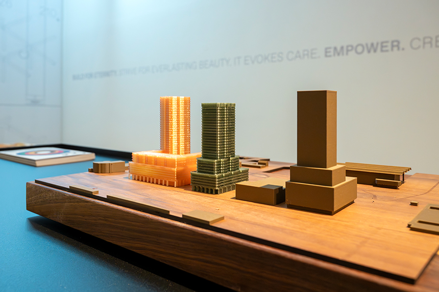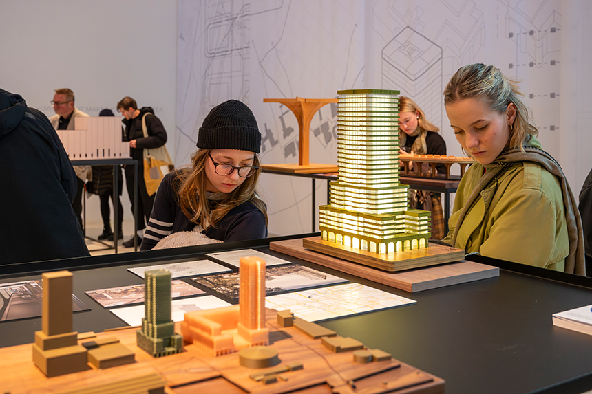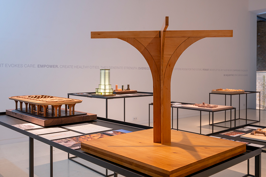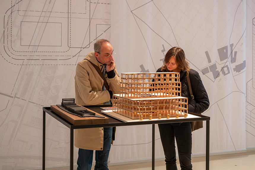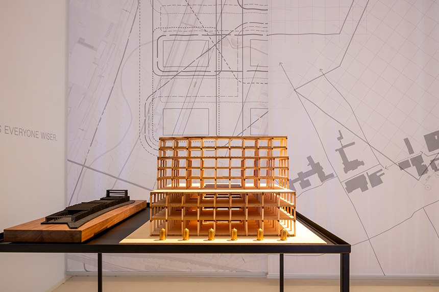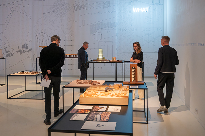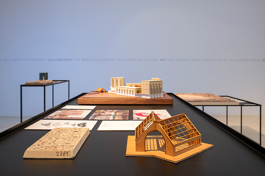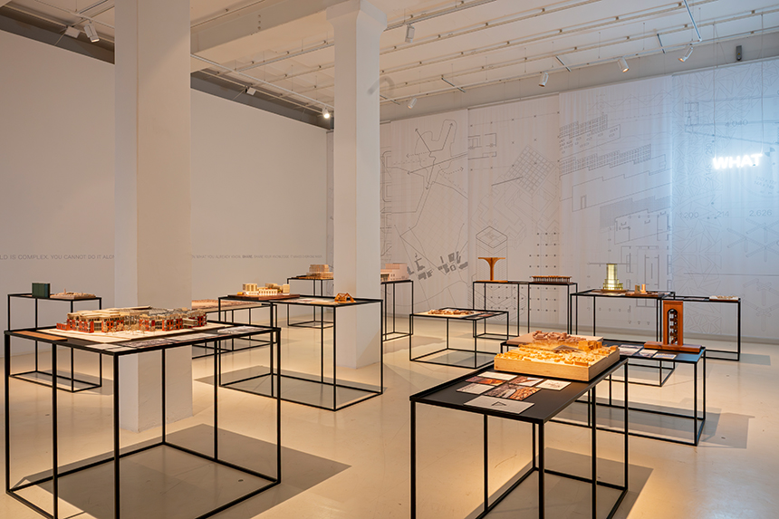 • The WHAT in the second space brings twelve projects to life through models, drawings, materials, and photographs, showing how social engagement, design expertise, and craftsmanship take shape in the built world.